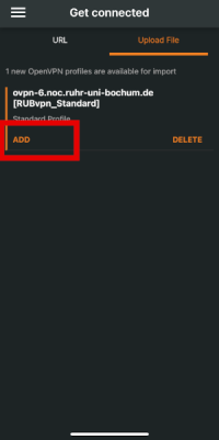 - Die App OpenVPN Connect startet. Importieren Sie das nun erscheinende OpenVPN-Profil durch Tippen auf das grüne „+“-Symbol.