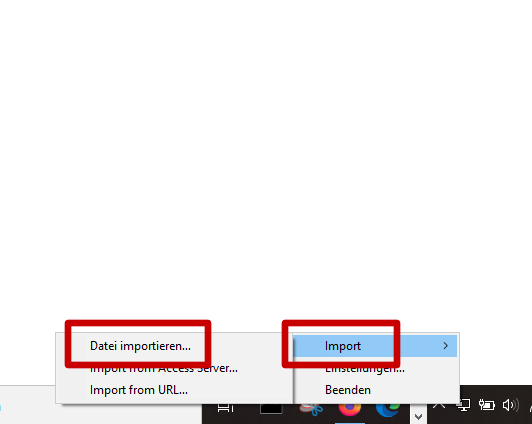 - Right-click on the OpenVPN icon in the system tray and select Import → Import file…