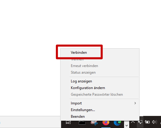 - As soon as OpenVPN has been started, the icon appears on the right side in the system tray.